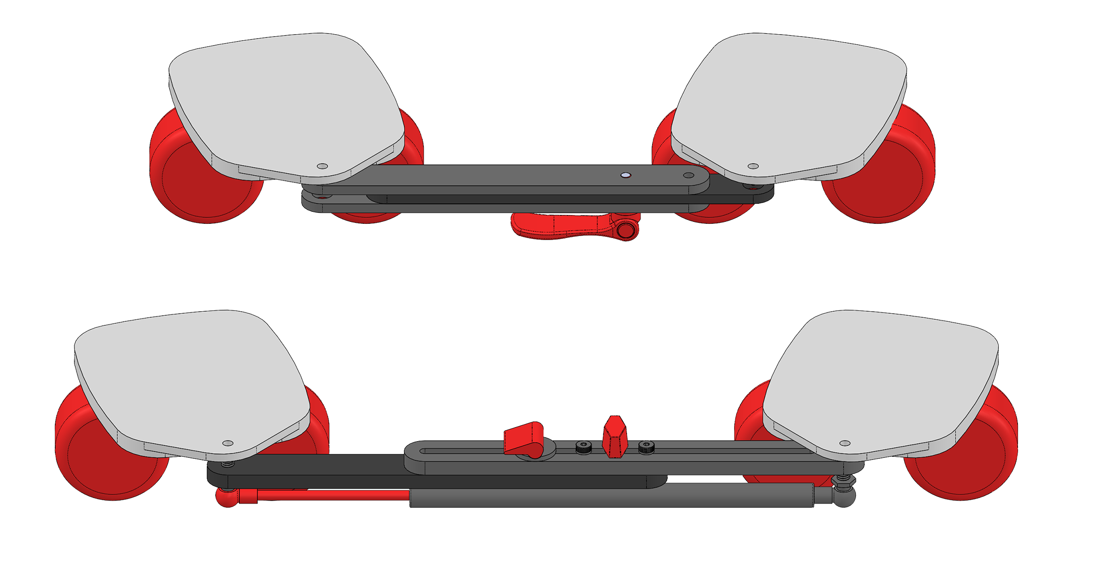 Tasked with developing an intuitive way to learn how to ride drift skates, a series of robust prototypes were fabricated to test various mechanical solutions. Through four rounds of kid testing at MGA Entertainment, we honed the mechanical design of Street Drifters into an effective learning aid for the very unintuitive body motion needed to ride drift skates.